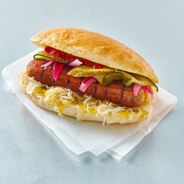 Un clásico reinventado: El HotDog. Elaborado con una base de proteína vegetal. La combinación perfecta entre sabor tradicional e innovación.