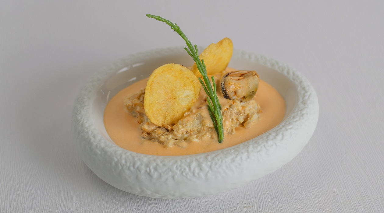 Ensaladilla de mejillones y gazpachuelo de su escabeche